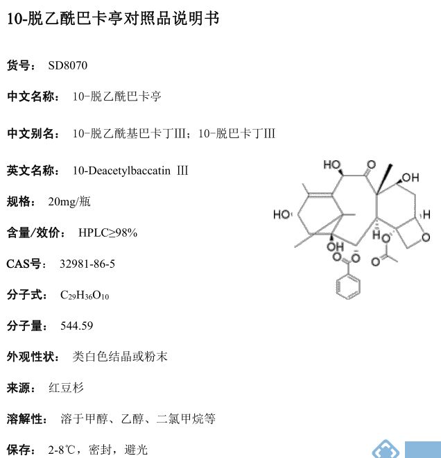产品名称: 10-Deacetylbaccatin Ⅲ;10-脱乙酰巴卡亭