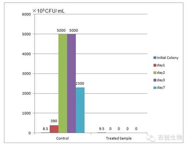 图为对照组(Control)与处理组(Treated Sample)一周内菌落CFU变化及比较。